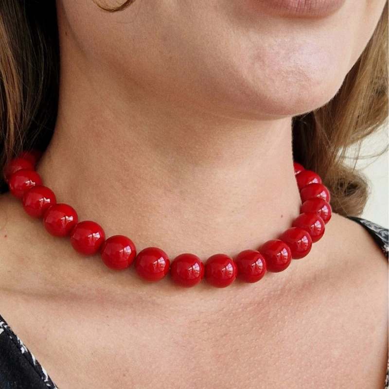Чокер из искусственного тонированного жемчуга сорта Майорка. Длина ~ 40 см, карабин с цепочкой +5 см, диаметр бусин — 14 мм. Вес ~ 90 г. Металл фурнитуры:...