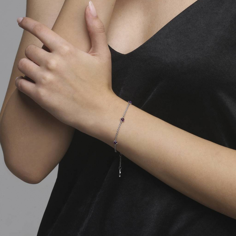 Браслет с аметистом из коллекции «Лотос». Общая длина 18 см, с возможностью регулировки на 16,5 и 15 см.