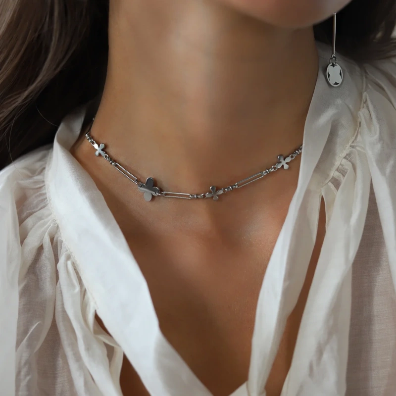 Колье из серебра 925 пробы, покрыто родием. Длина цепочки 36 см + 5 см удлинение.